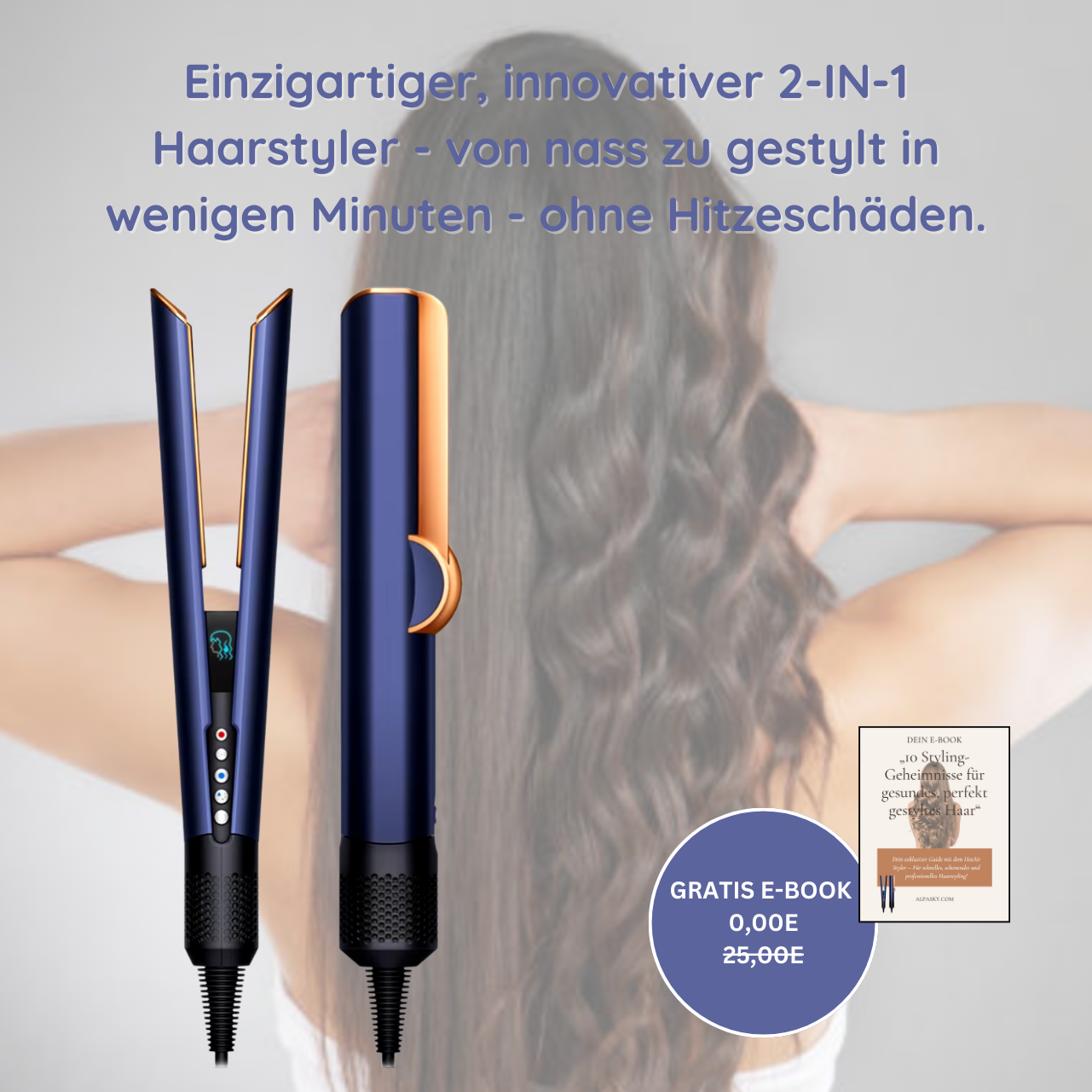 ”Profi-Styling für dein Zuhause. Glänzendes Haar in Minuten.“